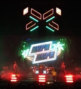 They left for a couple of minutes and returned to the encore that started with RATATATA (BABYMETAL × Electric Callboy song) with the BABYMETAL audio parts as they were projected on the screen, first their images and then only their silhouettes.